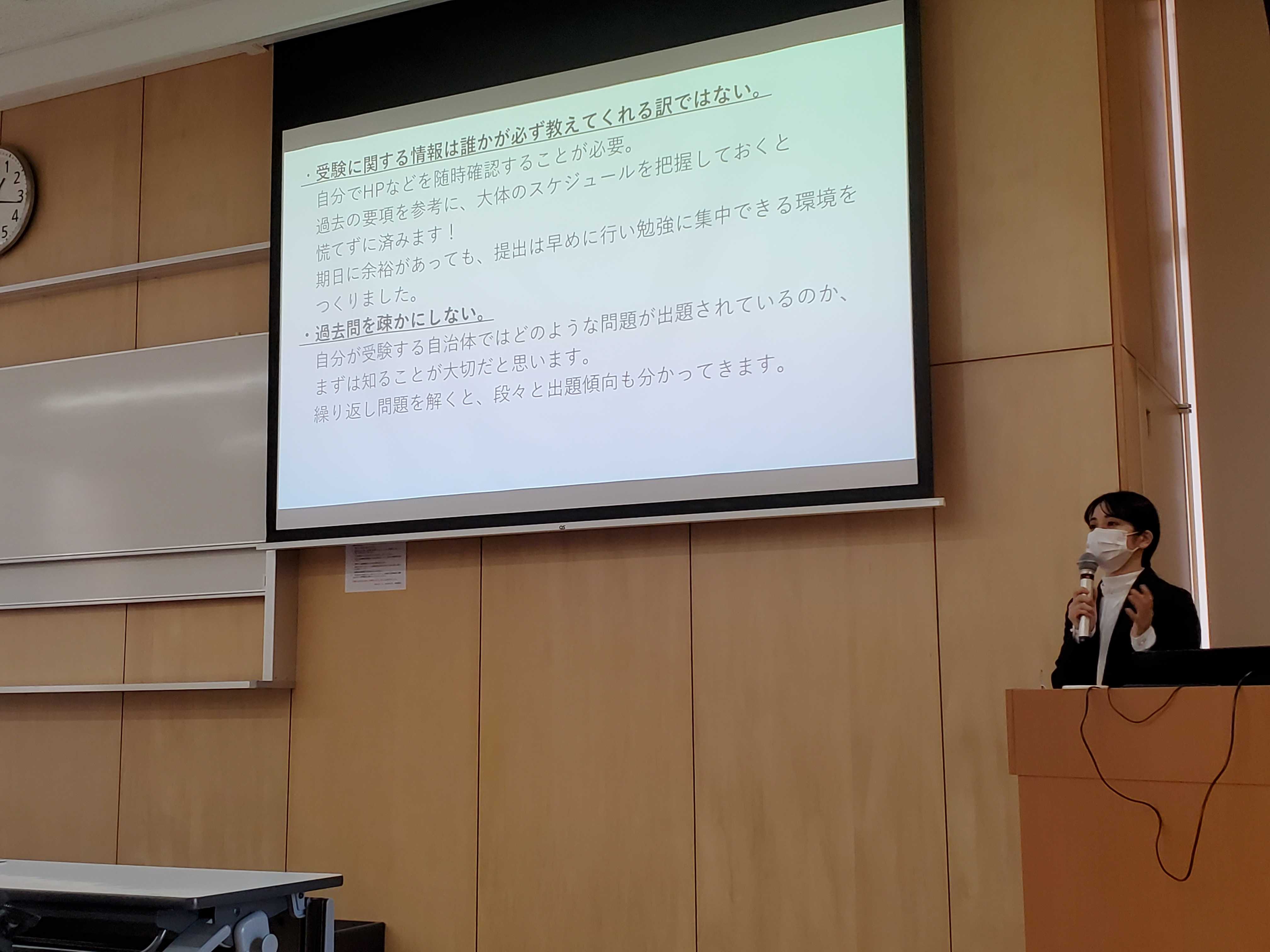 現場での実体験を交えながら、大学生のときに何をすべきか等についてお話をしていただきました。 教職、健康づくり・競技スポーツの指導者を目指す在学生たちにとって、大きな刺激となる講義になりました!