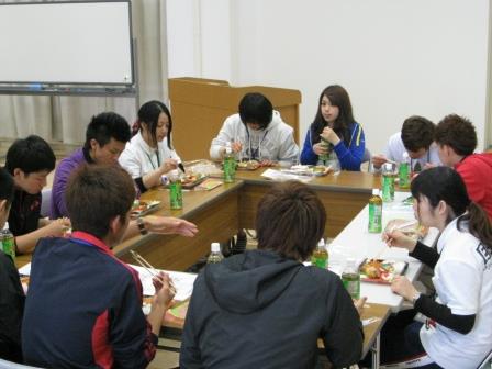 ボランティア学生と共に、ゼミ別で食事をとり、午後からはアドバイスを受け、履修登録を完成しました。