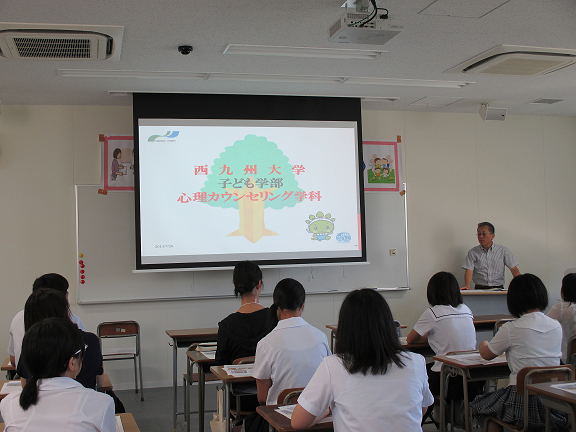 学科説明の後、体験授業や箱庭、コラージュの実践をおこない大学での学びの一端を紹介する機会を持ちました。