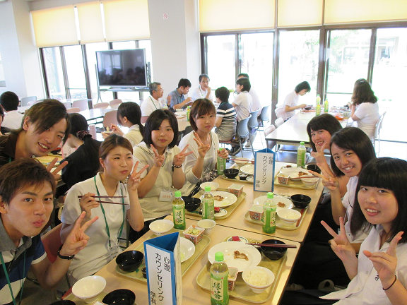 学食で大学生と一緒にランチタイム。