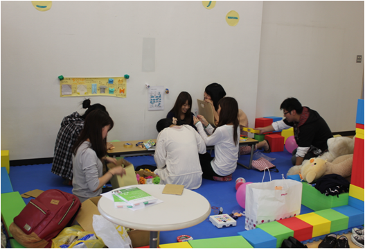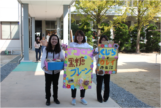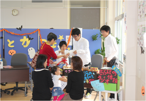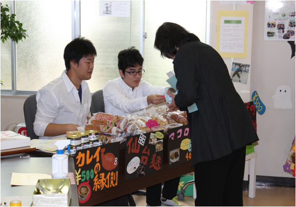 心理カウンセリング学科では、東日本大震災で佐賀県に避難されてきている方々に支援活動を行っており、その支援活動「ほっとひろば西九大」の様子を展示しました。また、宮城県の物産も販売し大好評でした。