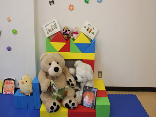 「子どもコーナー」子どもたちが、遊んでくれるのを待っている くまさんの親子です。
