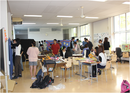 学園祭前日にみんなでカフェスペースの設営をしました。
