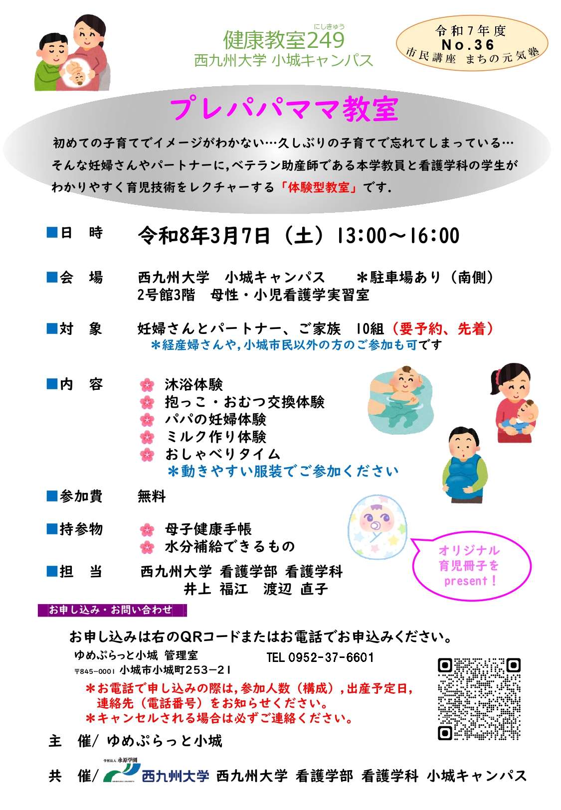 看護学科では「プレパパ・ママ教室」を開催します