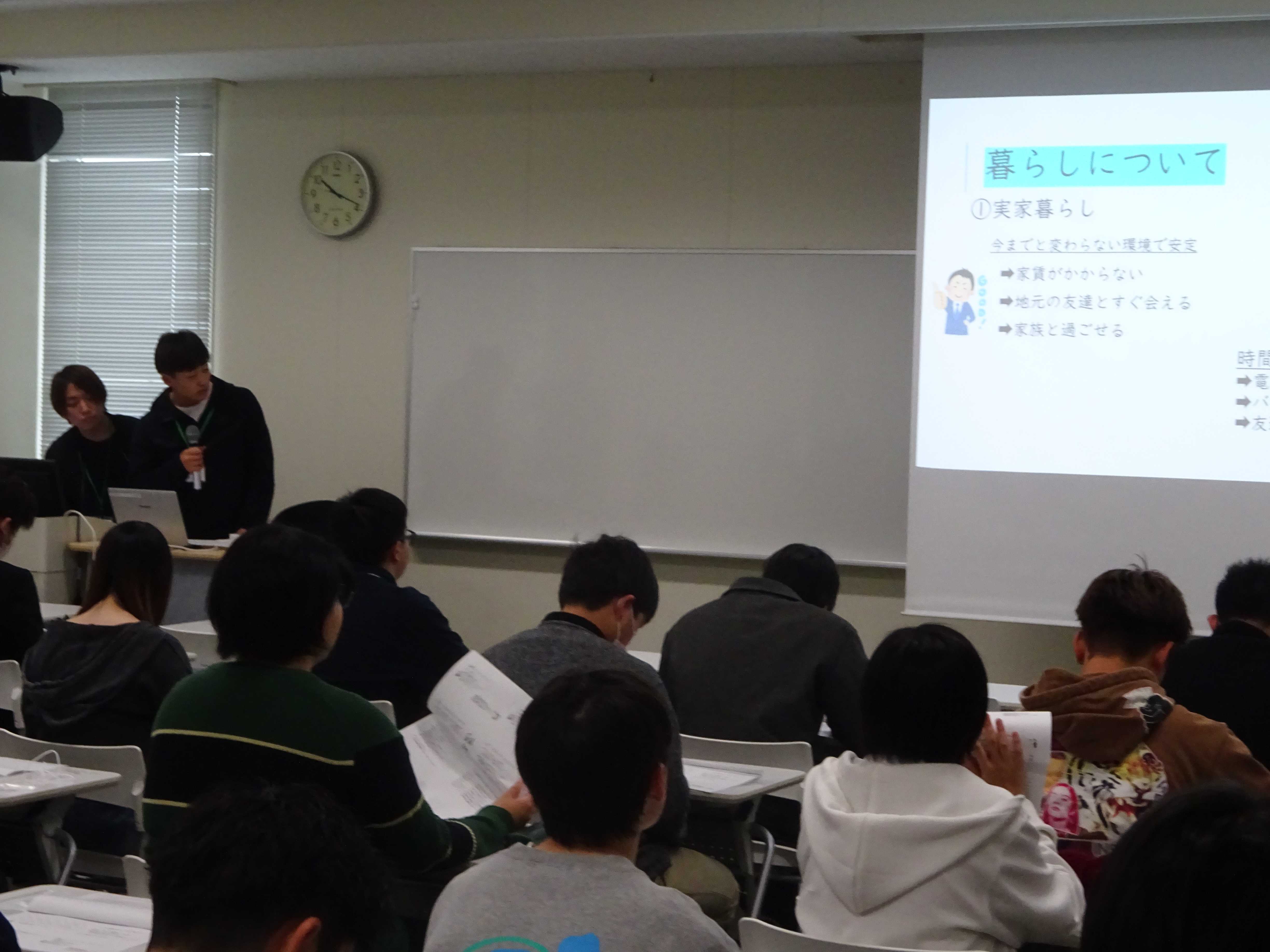 現在1年生の学生から,「生活について」「学業面について」実体験をもとに,お話していただきました
