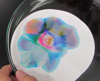 水性のサインペンの色素が水を含ませた紙(ろ紙)の上で分かれていく様子を観察しました