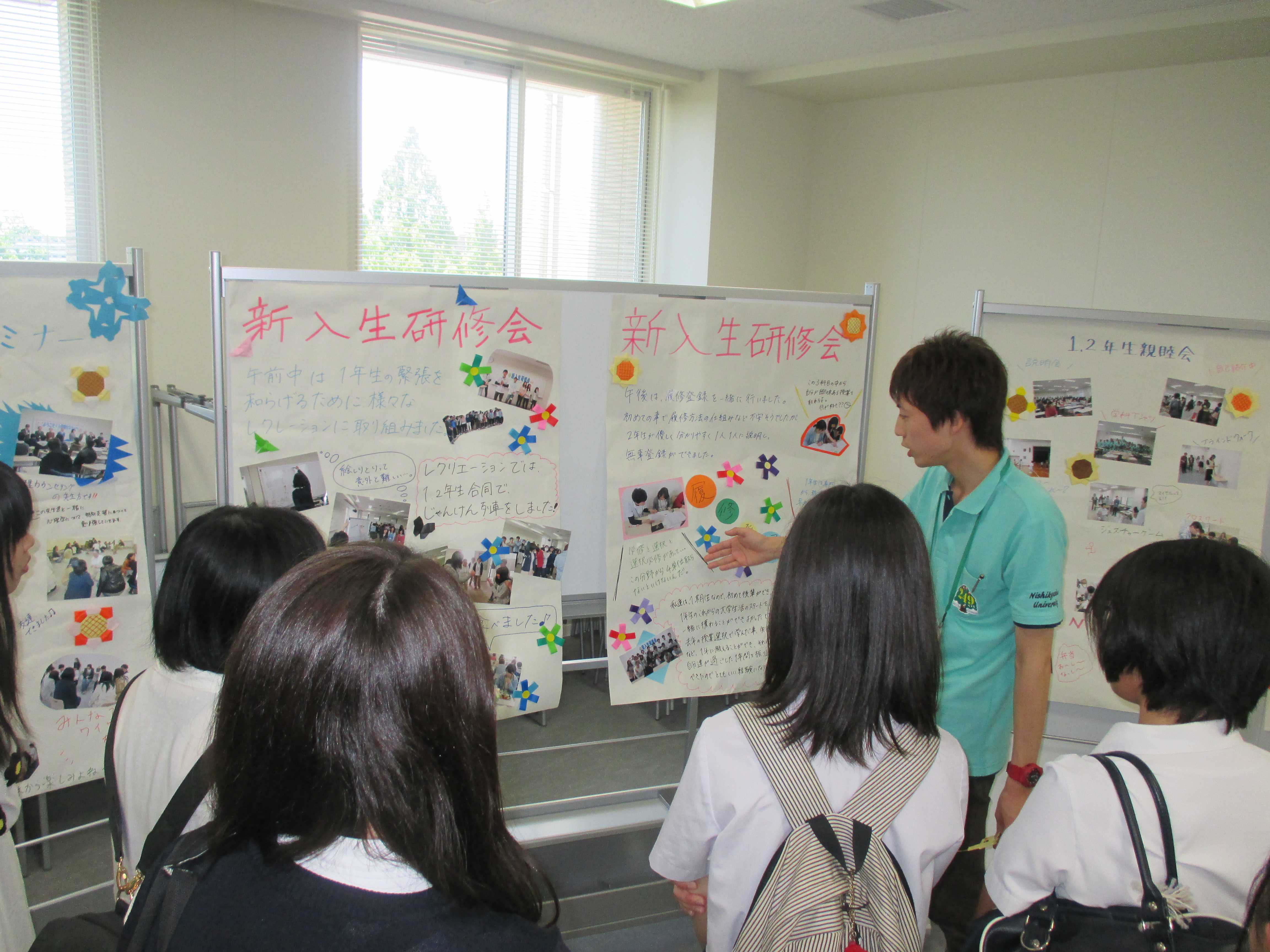 ここでは、学部2年生が中心となって、学部1年時の主体的な学びについてポスターを作成し、入学してから1年間の学びの軌跡を展示しています