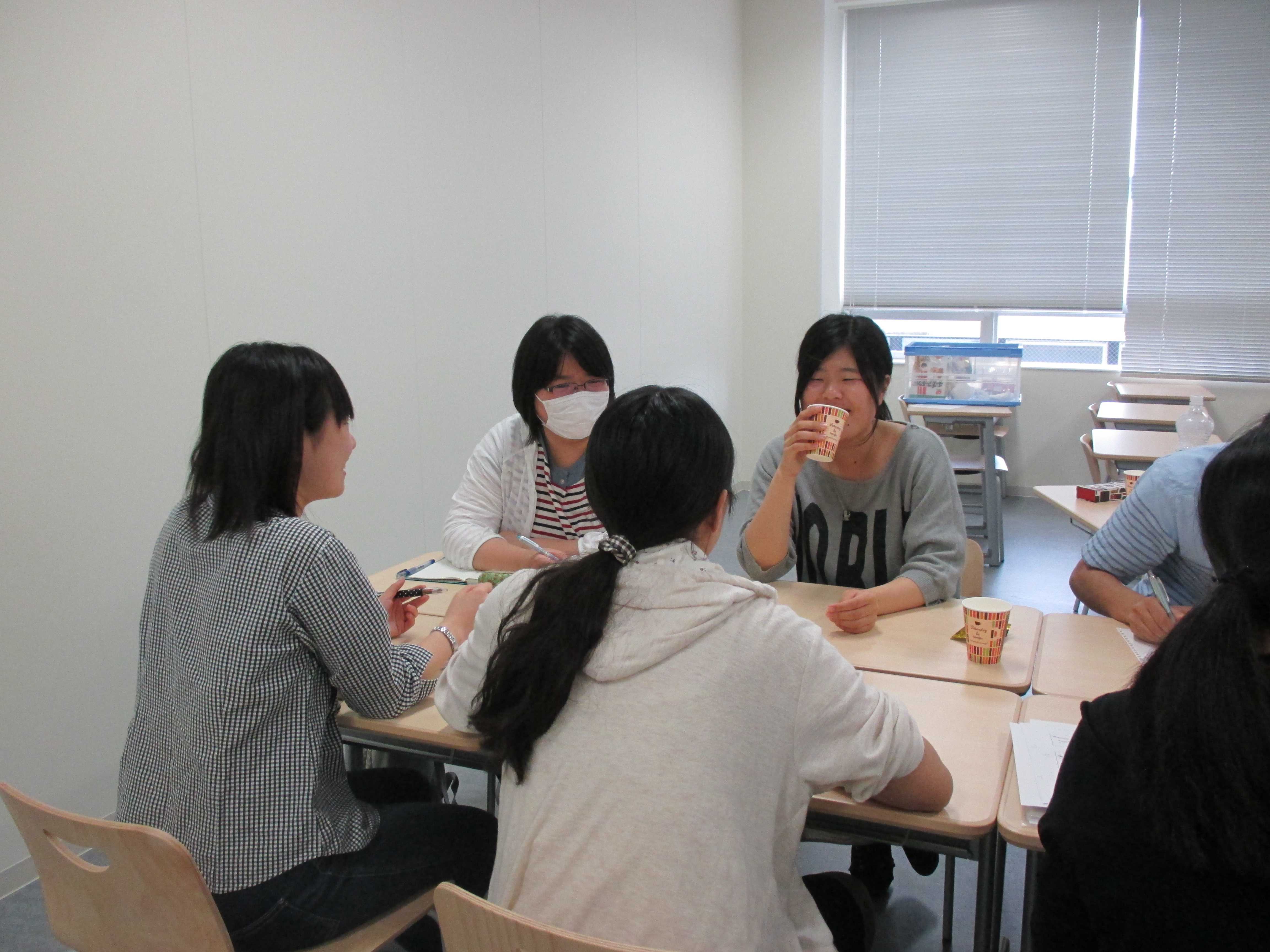 和やかな雰囲気のなかで、試験前の勉強の仕方や、ノートのまとめ方、レポートの書き方など、次々と質問があがっていました。短い時間でしたが30人近い1年生が集まり、アドバイス役の2年生メンターも大忙しでした