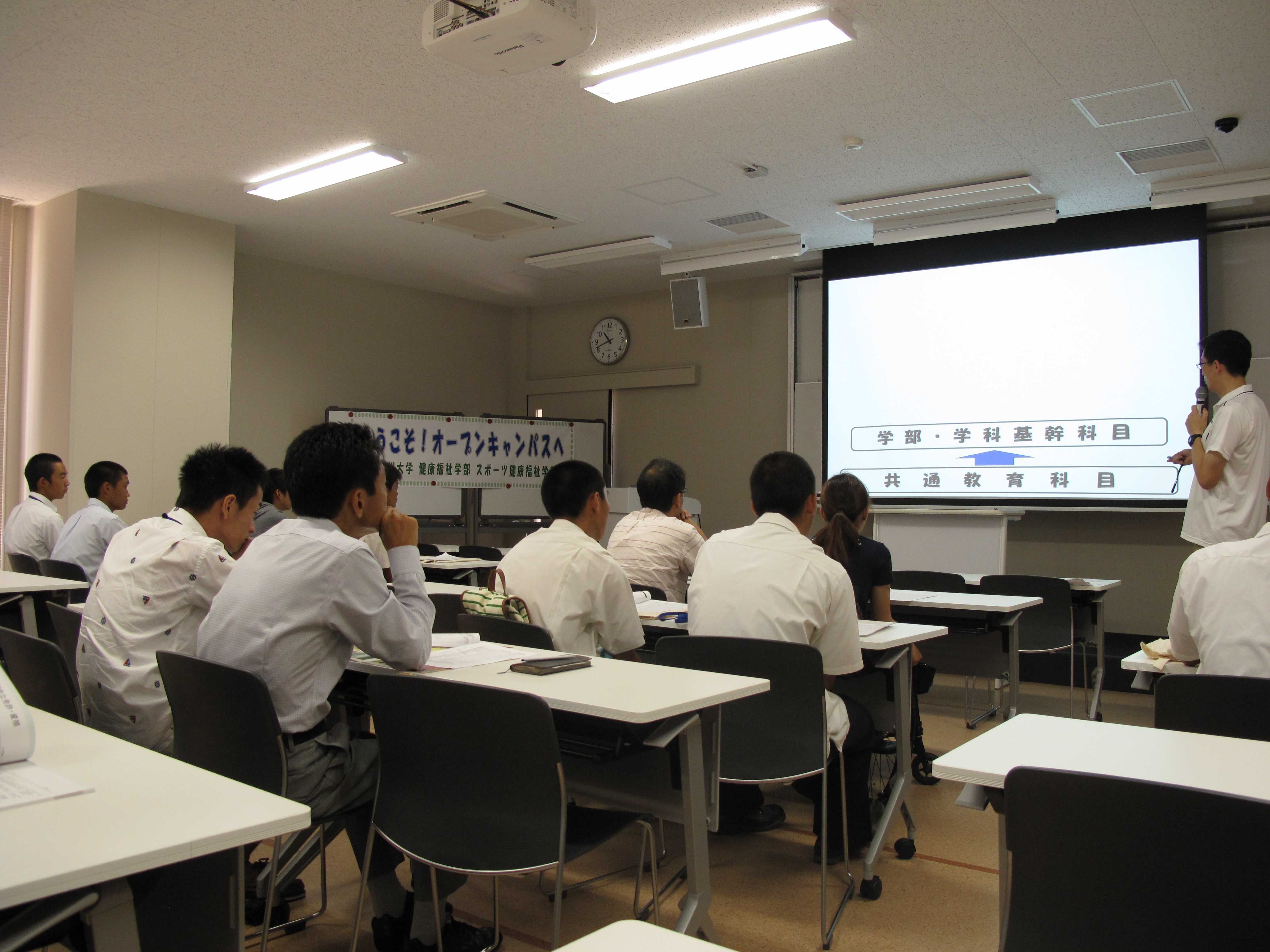 山田先生より大学の授業の流れや学科について説明を行っていただきスポーツ健康福祉学科を少しでもわかっていただけたのではないのかなと思います。
