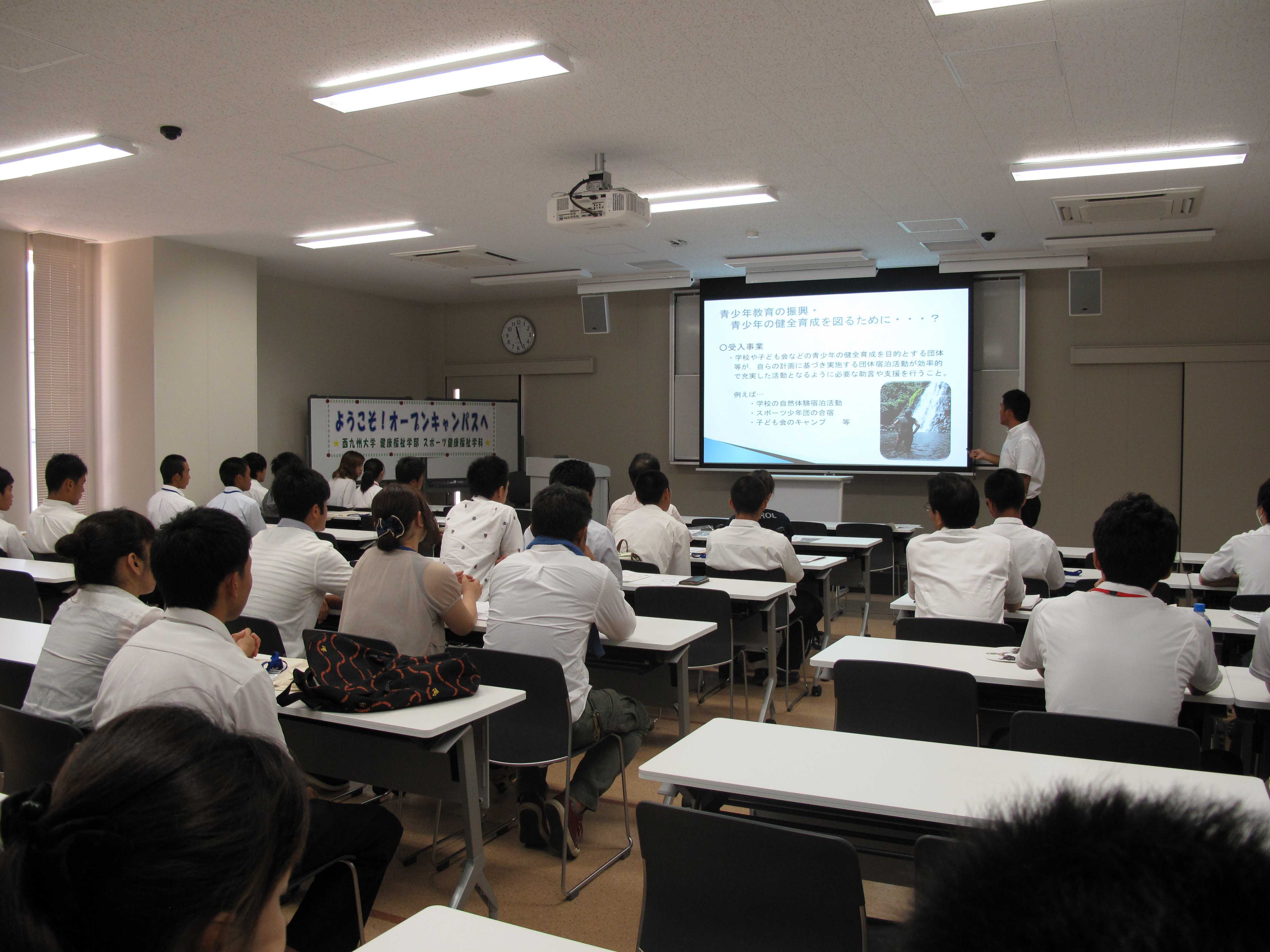 卒業生の中村匡寛さん、在校生の橋元小百合さんから授業、サークル活動、学校生活について体験談をお話していただきました。