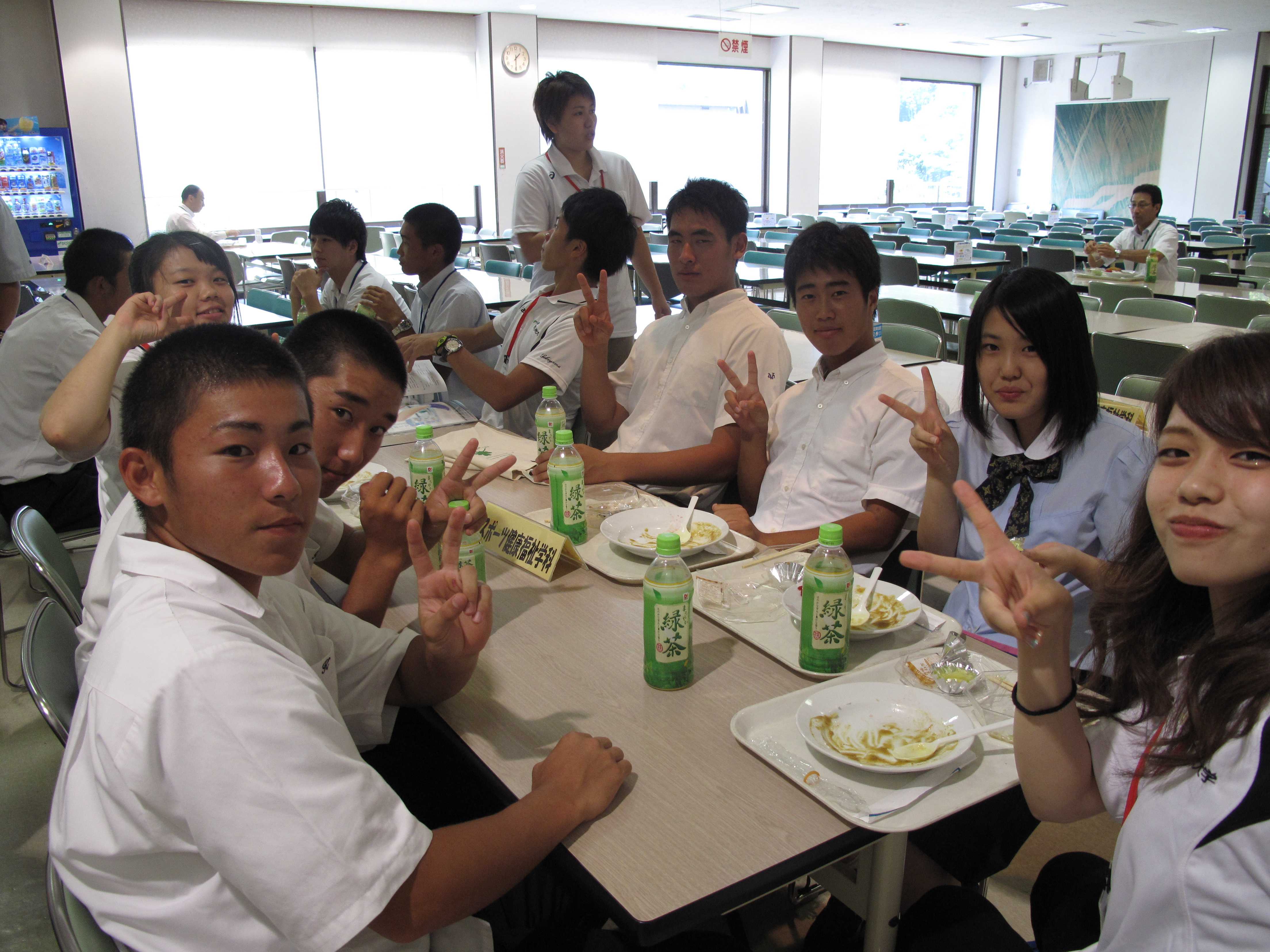 昼食は学生食堂で高校生、保護者、教職員、学生ボランティアみんなでカレーライスを食べました。