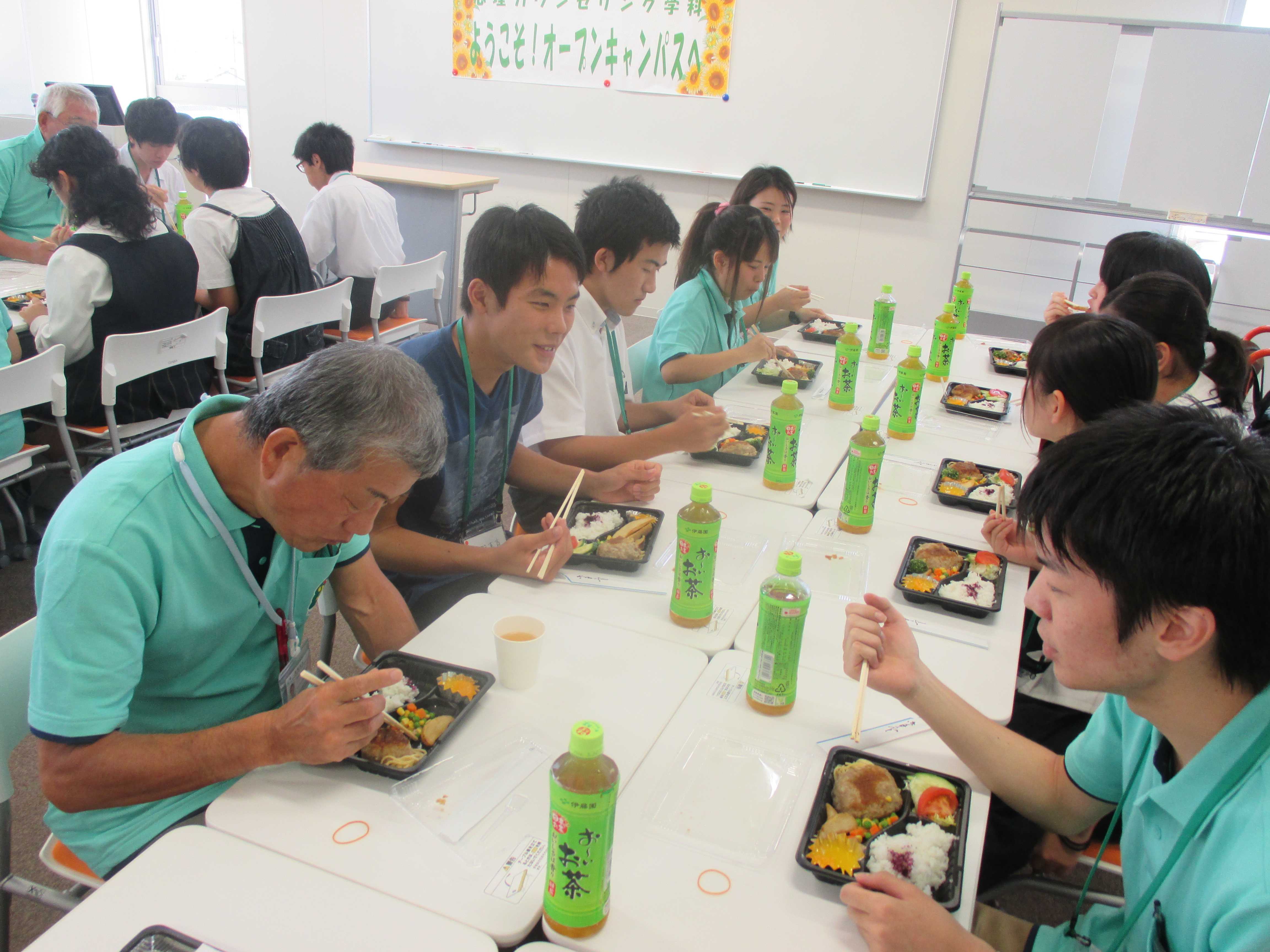 お昼は、参加者と教員、オープンキャンパス運営委員みんなで、美味しいお弁当をいただきました