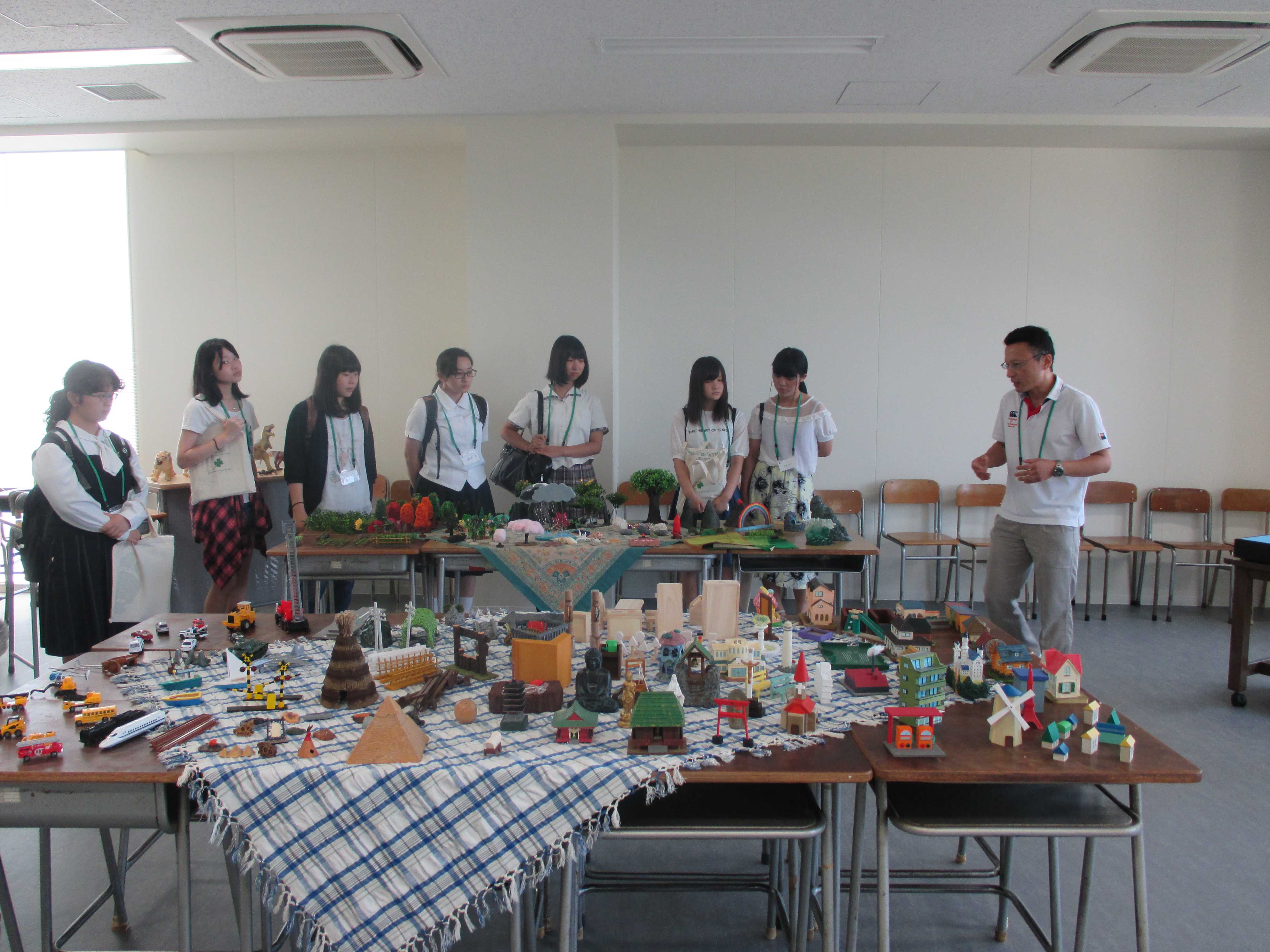 臨床心理学技法を実際に楽しみながら体験してもらう「コラージュ体験ルーム」「箱庭体験コーナー」の4か所を見てもらうキャンパスツアーを行いました