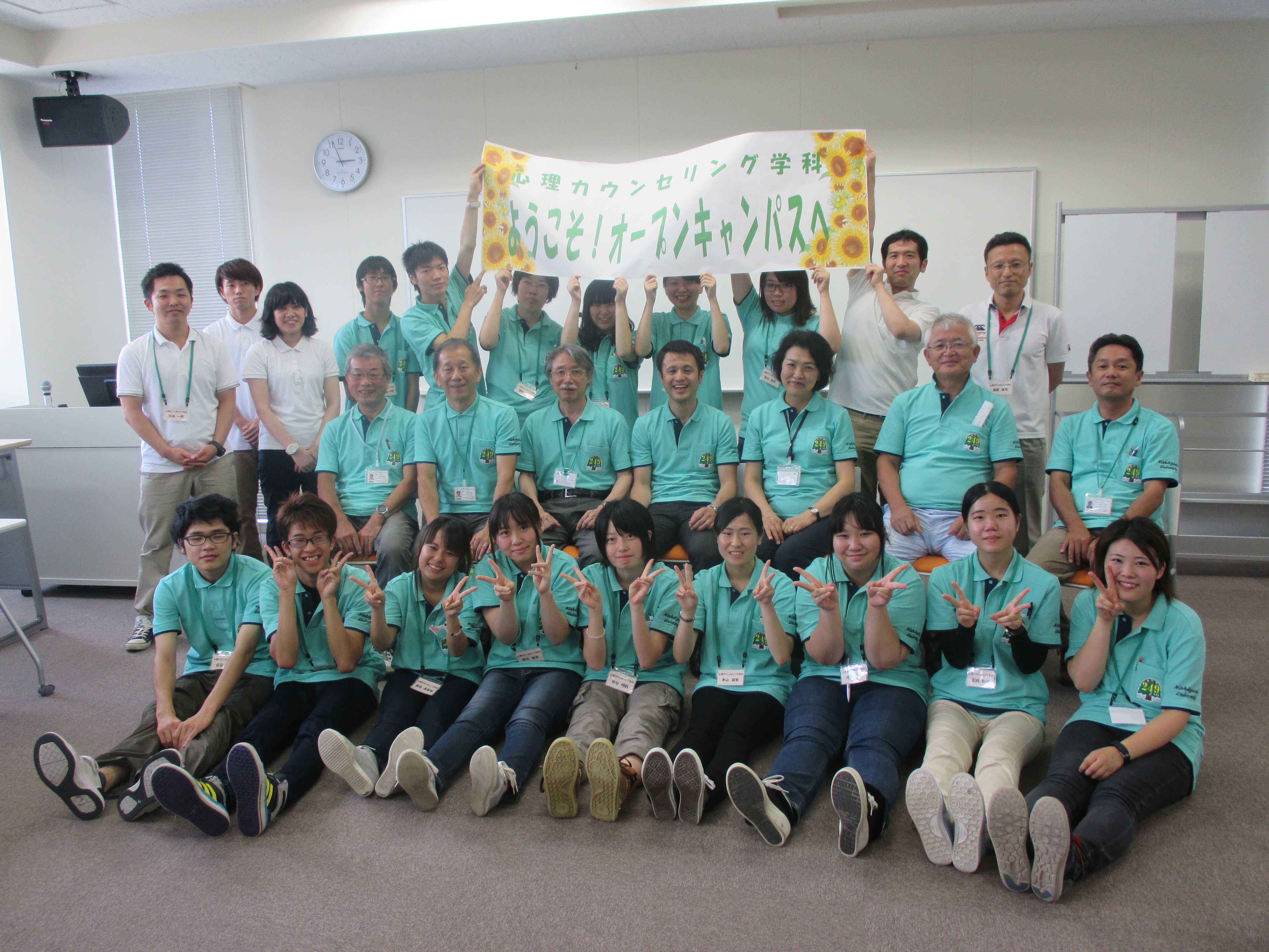 心理カウンセリング学科教員と、オープンキャンパス運営委員集合写真です