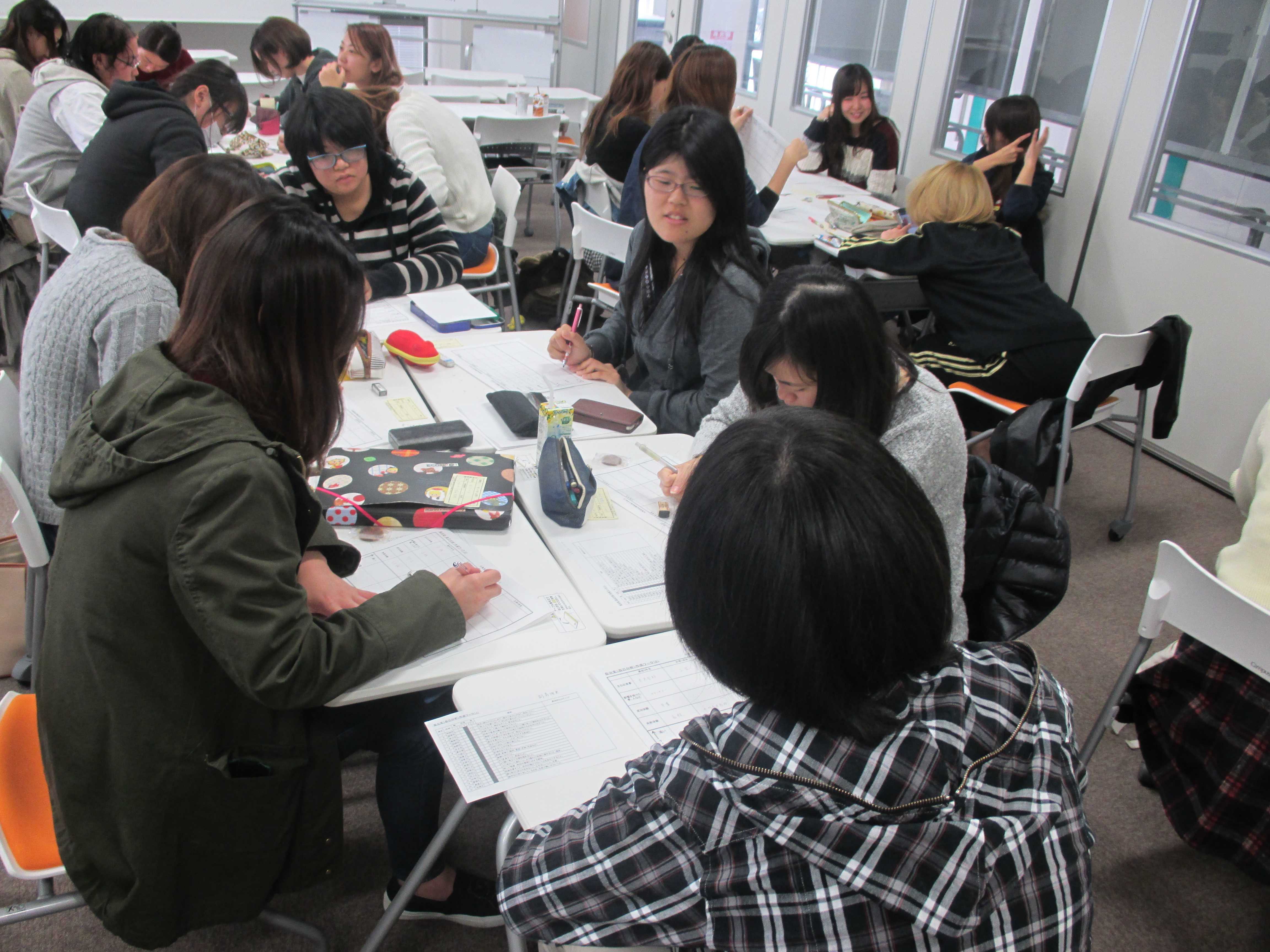 履歴書に関するガイダンスを踏まえて、自分史作成による自己分析やグループによる志望動機の伝え合い等のワークを行いました