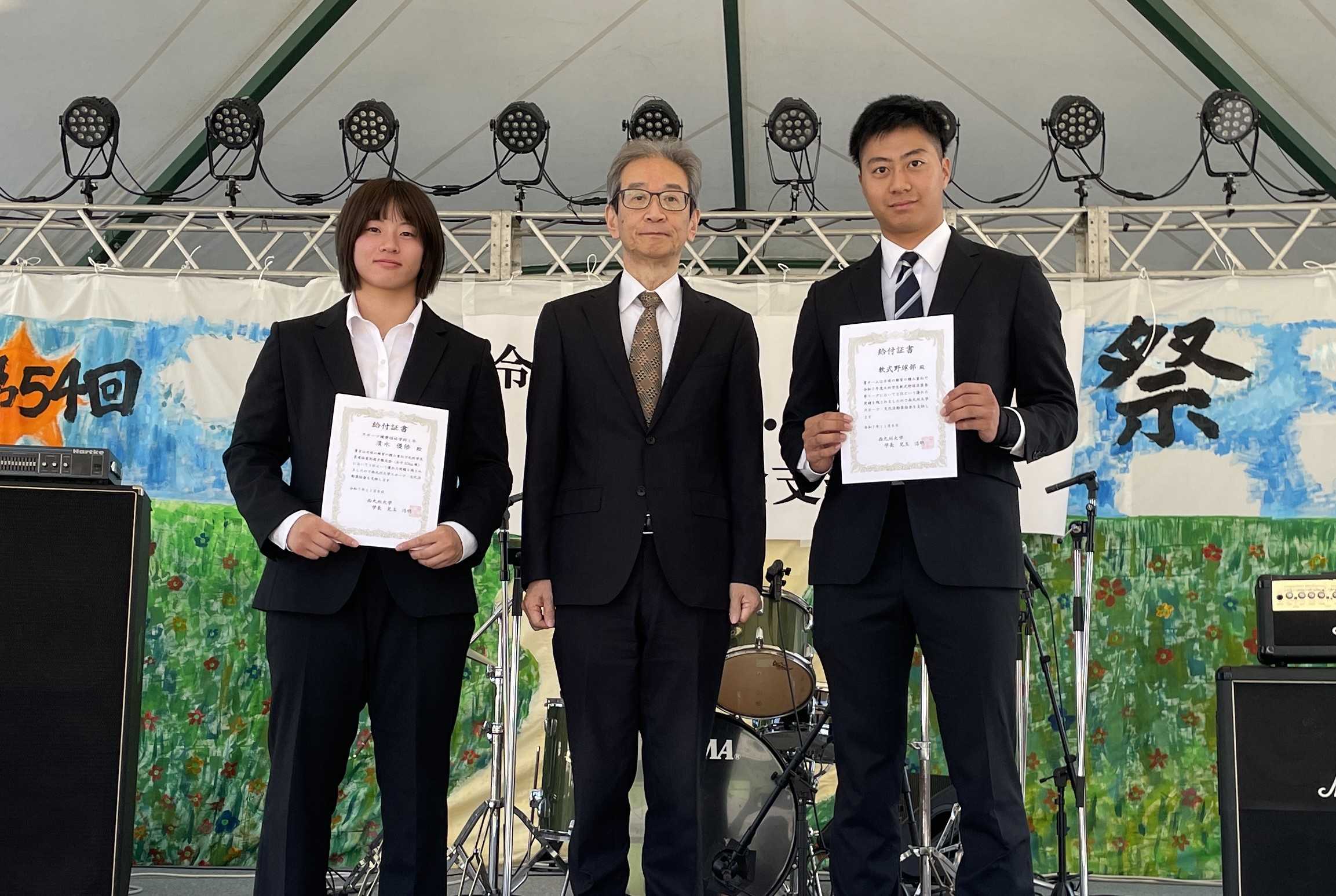 また、お祝い金を福元学長、兒玉学長、同窓会よりそれぞれから贈呈されました。