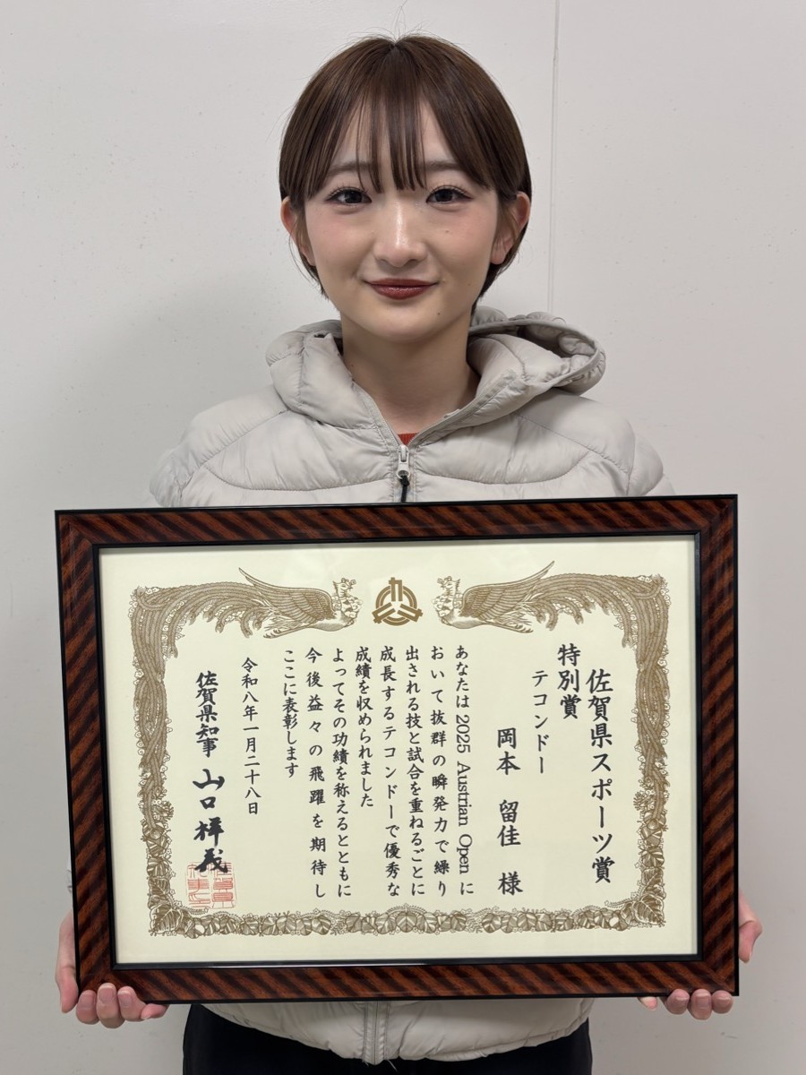 岡本さんはさらに、各種スポーツ大会等において優秀な成績を収め、県民にスポーツを通した夢や感動を与えるなど佐賀県のスポーツ推進に貢献した選手等の功績をたたえる「佐賀県スポーツ賞」の『特別賞』も受賞されています