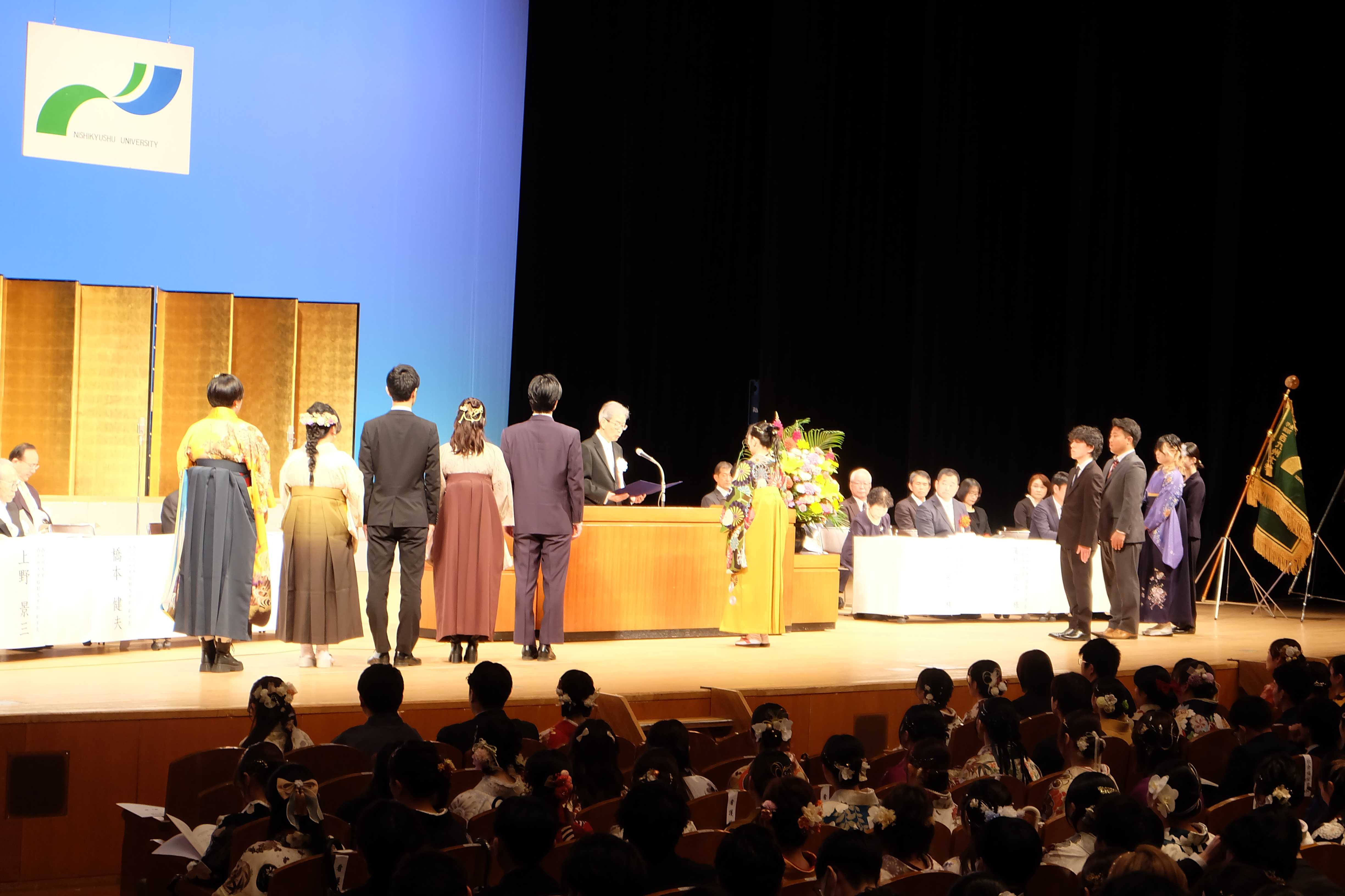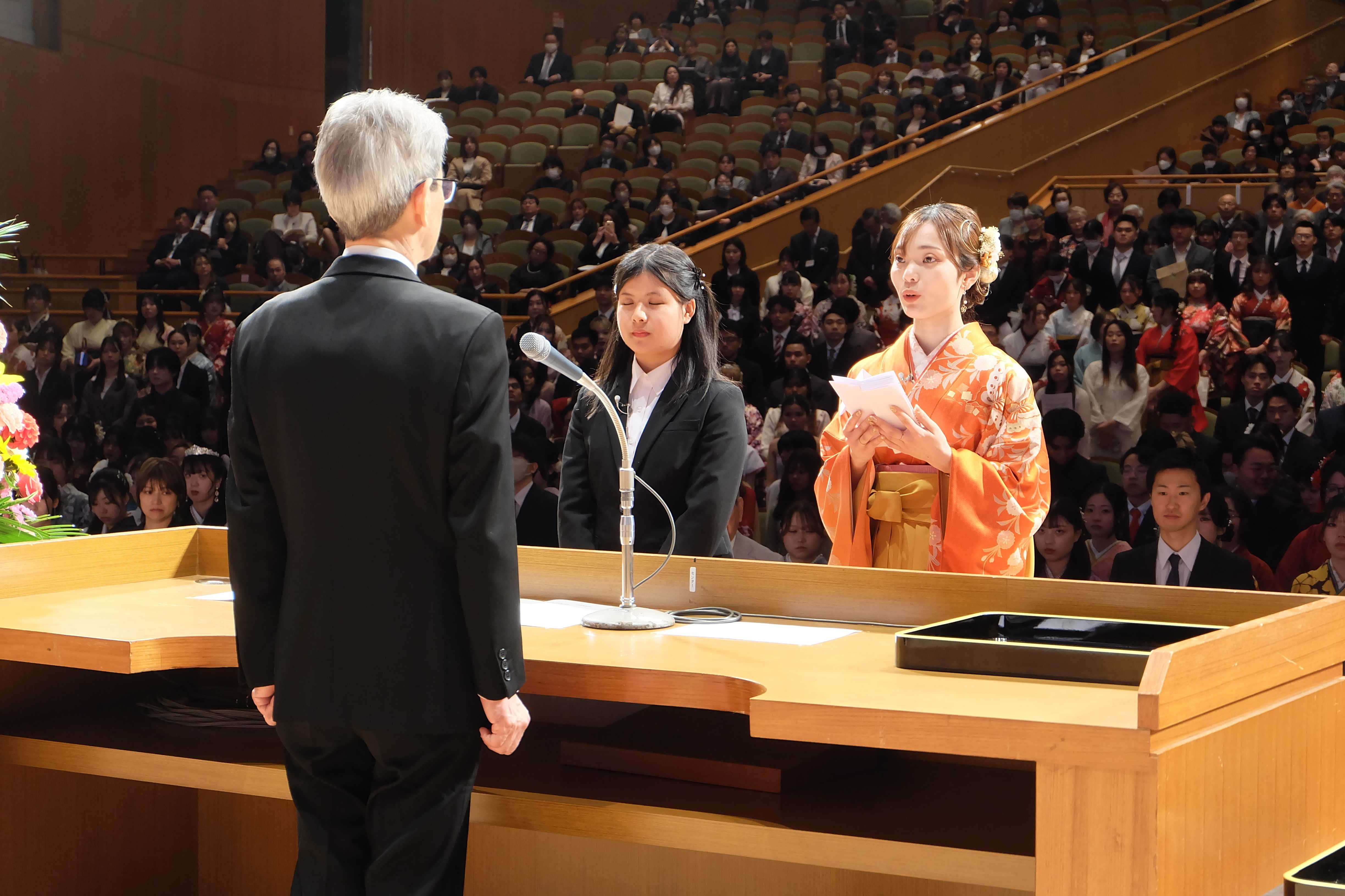 <大学 兒玉学長、短期大学部 福元学長より学位記の授与>